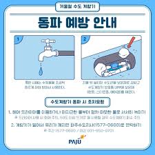 - 수도관 동파 방지를 위해 미리 보온 조치 및 약한 물 흐르게 하기