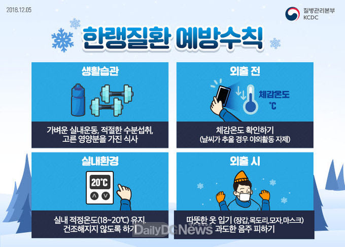- 체온 조절 능력이 약한 노인과 어린이는 추위에 특히 취약하므로 불필요한 외출을 피하는 것이 좋습니다.