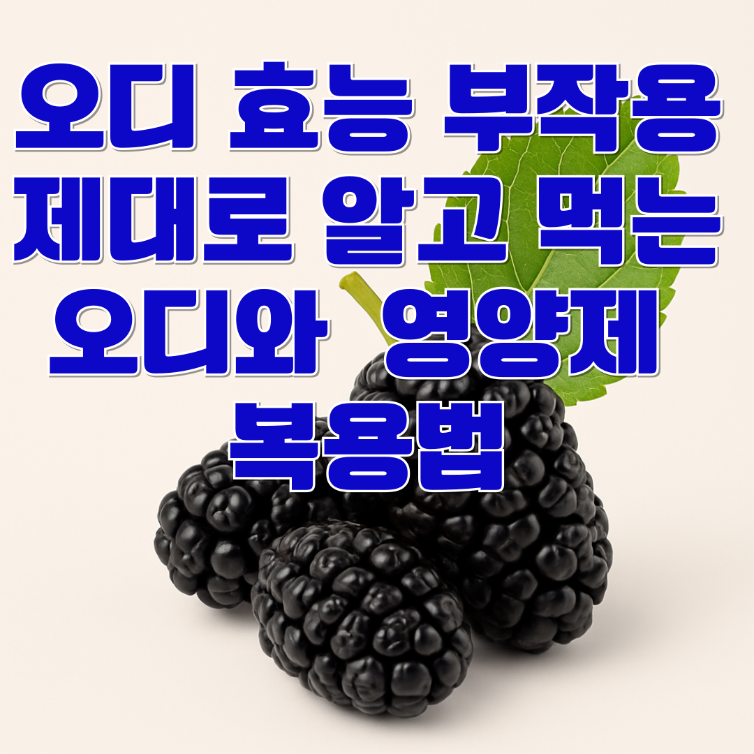 🔸오디 영양제: 시중에 판매되는 오디 영양제는 대부분 농축 형태로 제공되며, 하루 1~2 캡슐 또는 정량 표시를 따르는 것이 안전합니다.