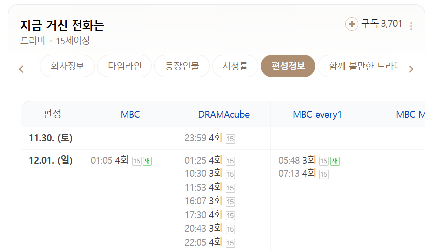 MBC 드라마 '지금 거신 전화는' 시청률, 재방송, 웹툰 원작, 결말 정보
