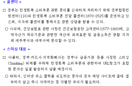 • 민생회복 소비쿠폰 콜센터 ☎ 1670-2525