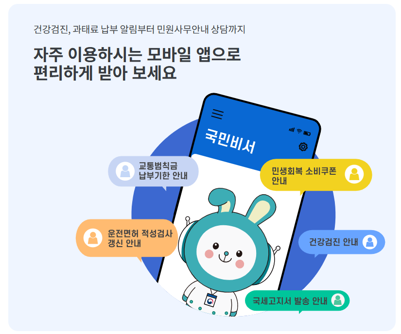 앱에서 ‘국민비서 서비스’ 메뉴를 찾아 신청하면 됩니다.